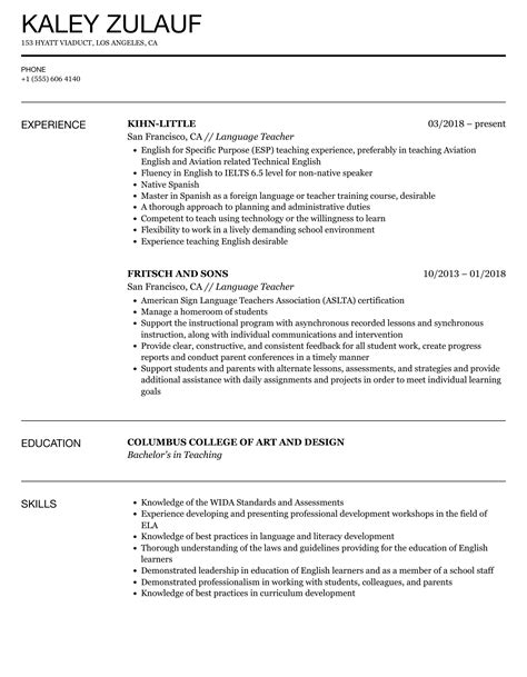 - Sample Resume For Language Teacher